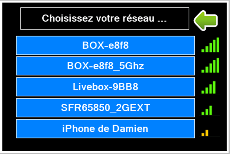La liste apparait, elle vous indique les 5 réseaux les plus forts et leur niveau de signal.