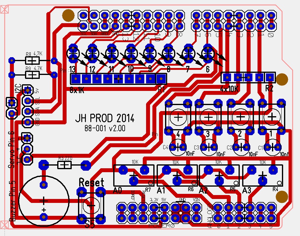c_arduino shieldMontage des résistances, les valeurs sont indiquées sur la sérigraphie.